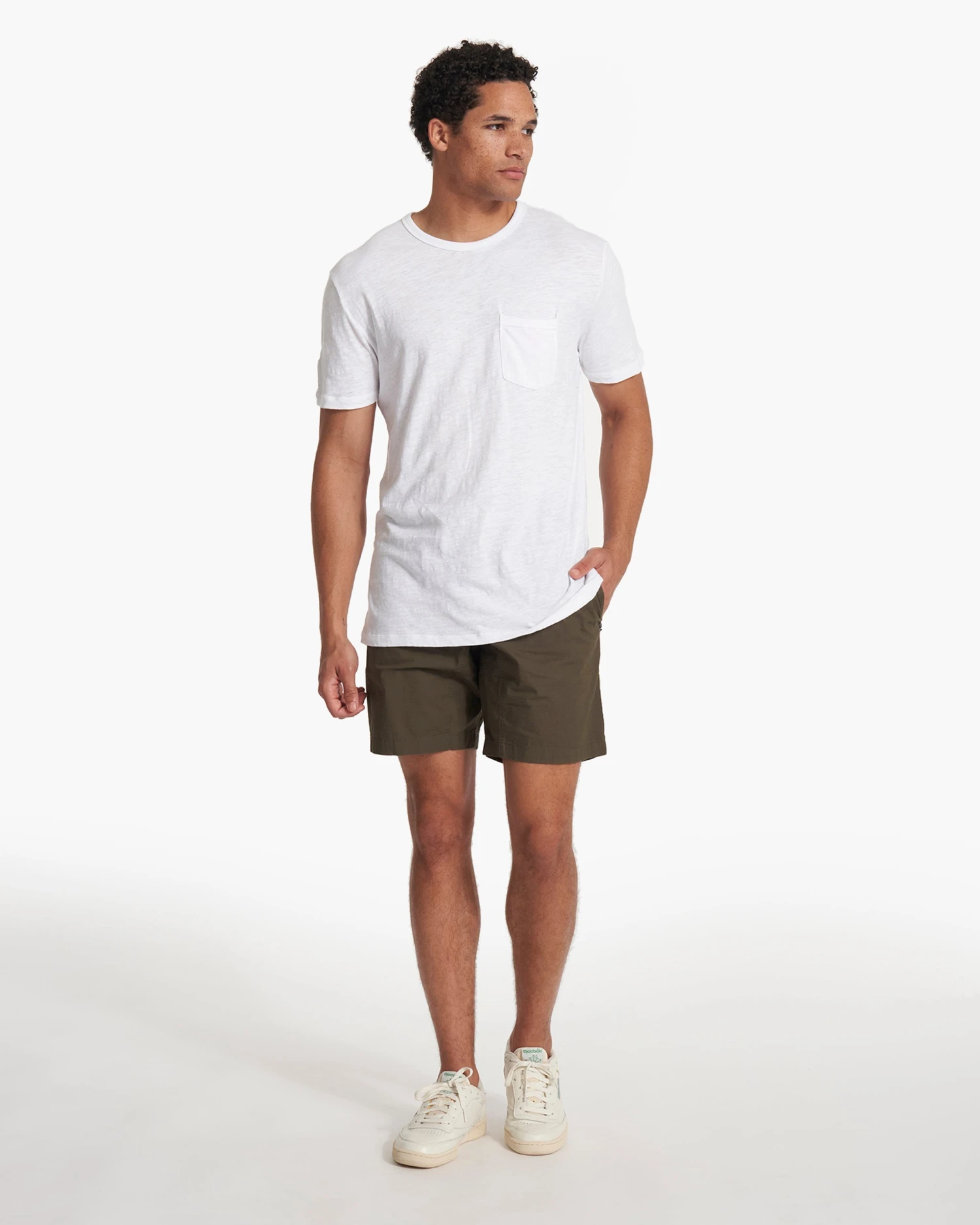 Find the casual comfort of your favorite broken-in tee. A pima cotton jersey tee, the chest pocket and rib binding details make this shirt an everyday essential.